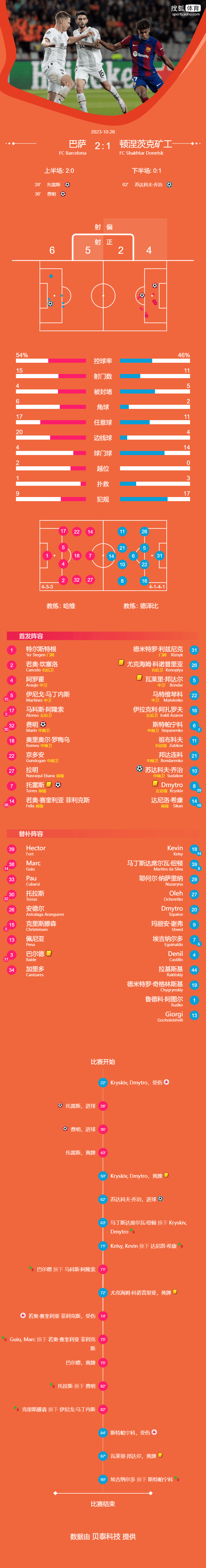 多乐游戏:北京时间10月26日,欧冠小组赛H组第三轮比赛拉开帷幕,巴塞罗那在主场迎战顿涅茨克矿工。在第28分钟,费兰-托雷斯在门前抢射得手,为巴萨打破僵局。第36分钟,费兰成功助攻小将费尔明,扩大了比分。然而,第62分钟,矿工的苏达科夫完成一记进球,将比分缩小。不幸的是,第74分钟,巴萨的菲利克斯受伤离场。最终,巴萨以2-1的比分战胜对手,赢得小组赛的第三场胜利,积累了9分,稳坐小组榜首。